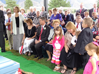 The next morning there was a viewing before the funeral and my sister Kim came, but we hadn't arrived yet. My sister Holly came to the funeral and was kind enough to let Jackson sit with her so CJ and I could enjoy the meeting without having to worry about him. After the funeral, Holly took Jackson to lunch and to my Mom's while we went to the graveside for the dedication of the grave. The people at Larkin Mortuary were so sweet. They had heard Grandma say that she wanted everyone in either Utah or red ties so they wore Utah ties to the funeral and also put a U sticker on the back of the hearse.